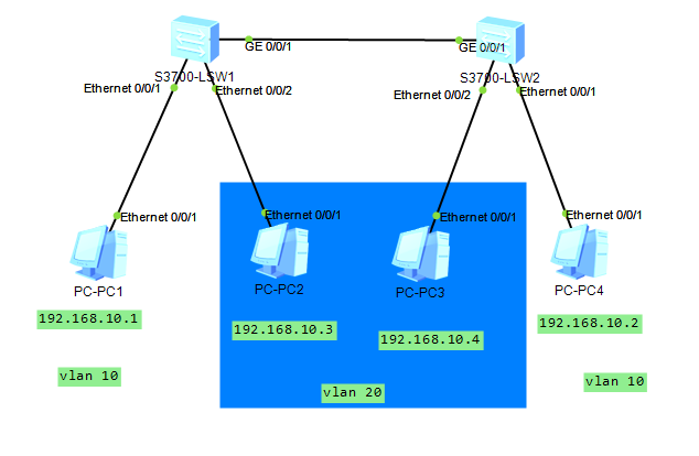 11[LSW2]vlan batch 10 20 #批处理创建 VLAN10 和 VLAN20